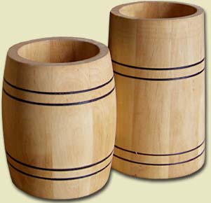 Kubki drewniane (olchowe lub dębowe), w kształcie stożkowym lub podobne